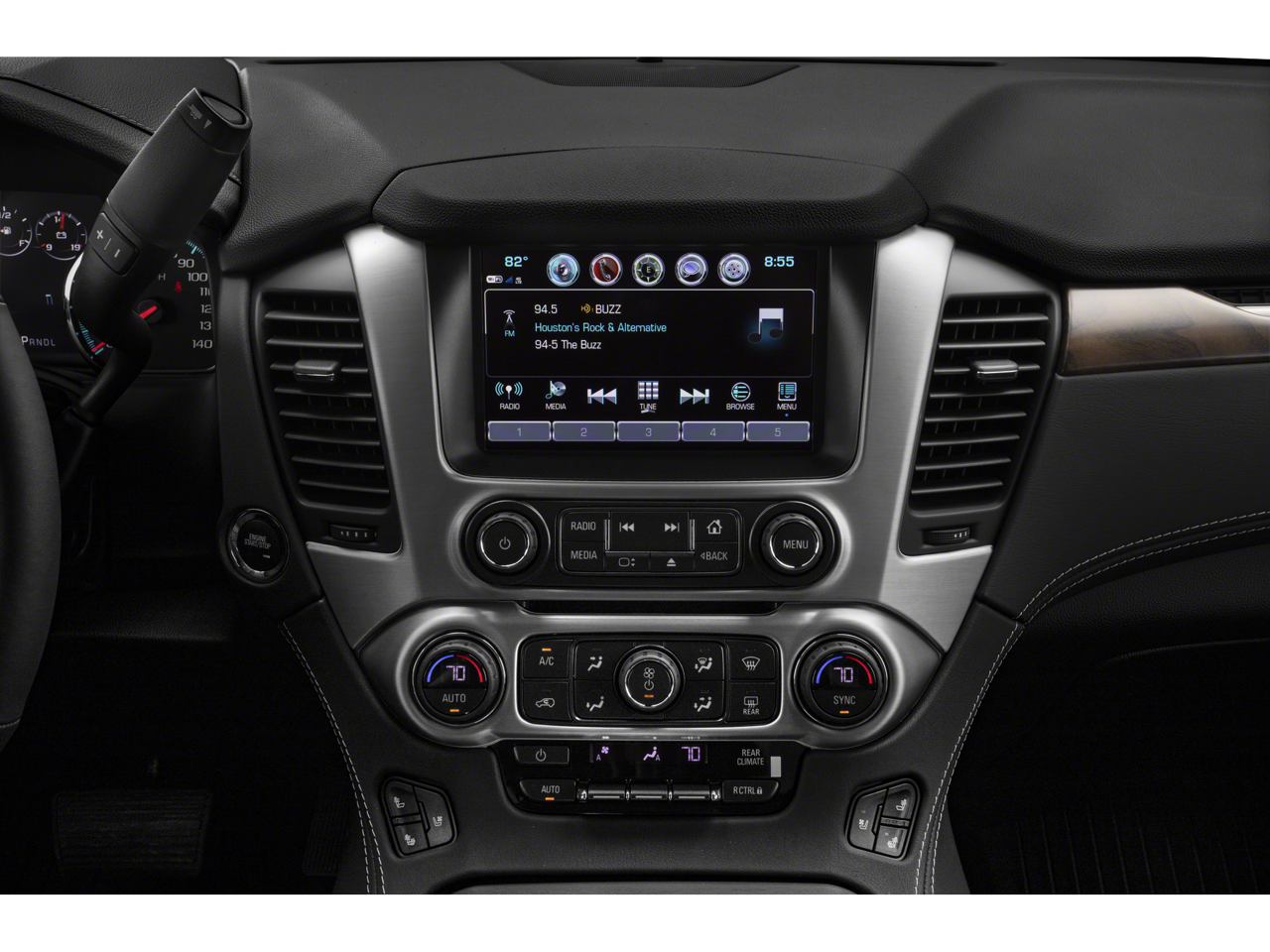 - Audio system, 8" diagonal Color Touch Screen Navigation with GMC Infotainment System AM/FM/SiriusXM stereo with seek-and-scan and digital clock, includes Bluetooth streaming audio for music and select phones; voice-activated technology for radio and phone; and Shop. Featuring Apple CarPlay and Android Auto capability for compatible phone; 5 USB ports and 1 auxiliary jack